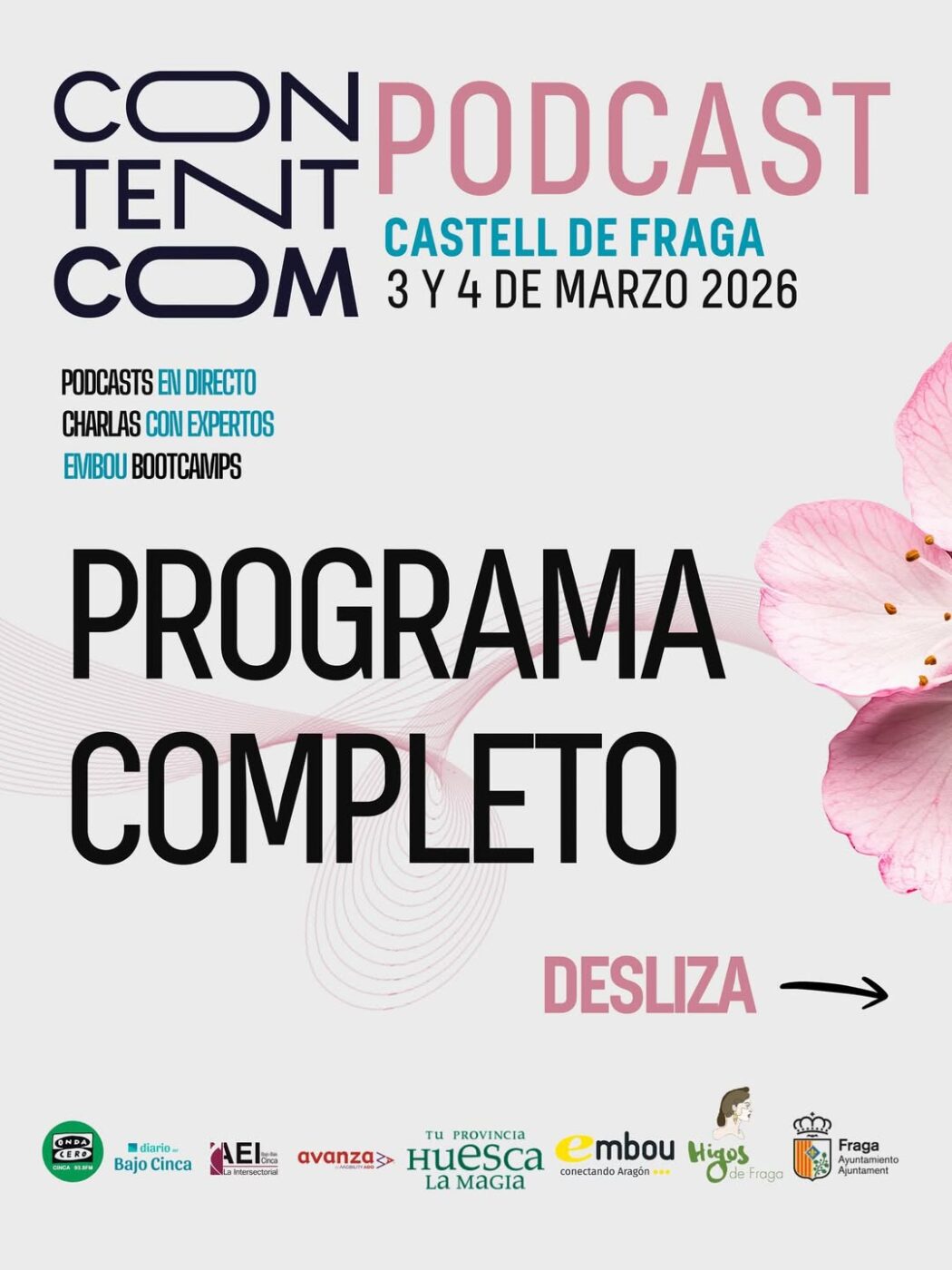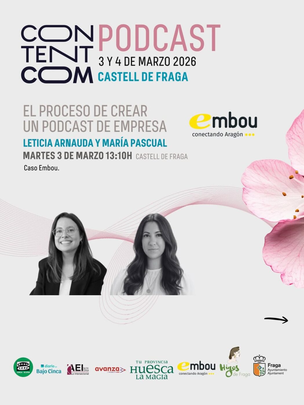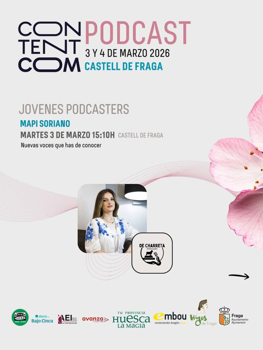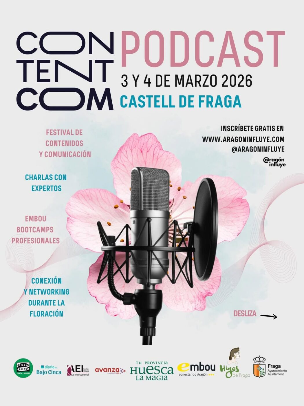 ¿Todavía no te has apuntado al ContentCom Podcast Aragón 🌸🚀que se celebra en Fraga los próximos 3 y 4 de marzo, y en el que La Intersectorial colaboramos?