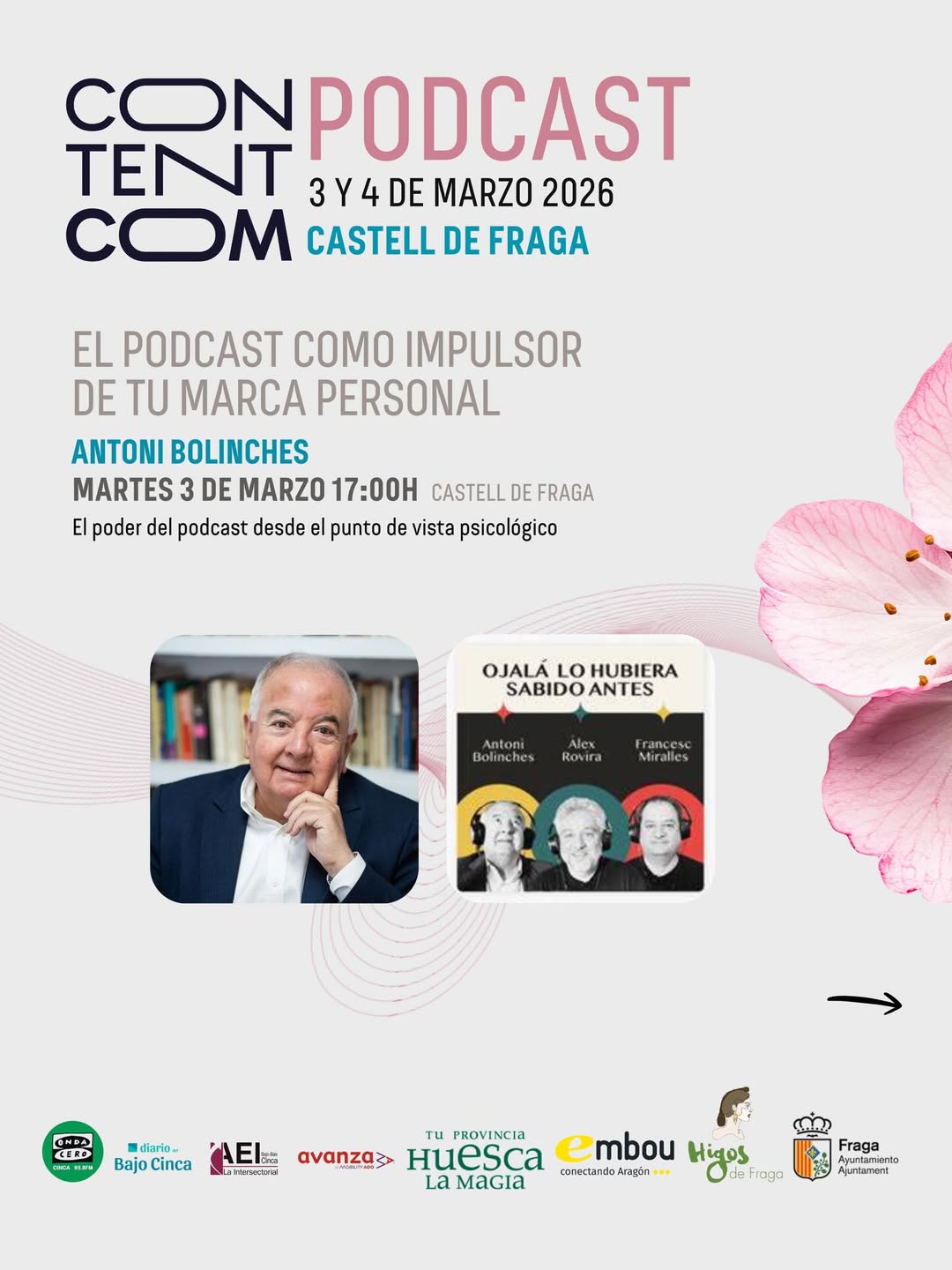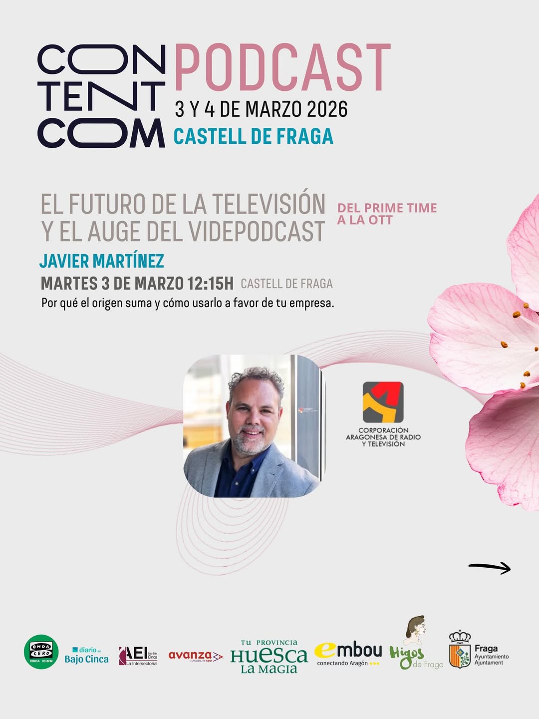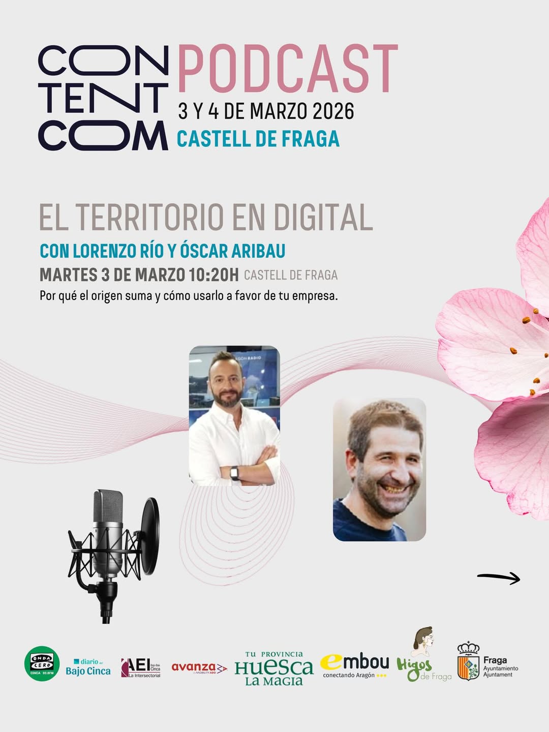 ¿Todavía no te has apuntado al ContentCom Podcast Aragón 🌸🚀que se celebra en Fraga los próximos 3 y 4 de marzo, y en el que La Intersectorial colaboramos?
